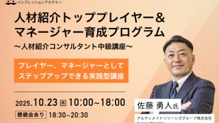 人材紹介トッププレイヤー&マネージャー育成プログラム~人材紹介コンサルタント中級講座~