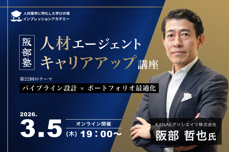 2026年3月5日 / Last updated : 2026年2月26日 正宏木村 定期開催の勉強会&イベントセミナー・勉強会オンライン来場型 人材エージェントキャリアアップ講座~阪部塾~ 【講座の趣旨】 人材紹介会社のコンサルタント(エージェント)としてご活躍されていらっしゃる方を対象と […]